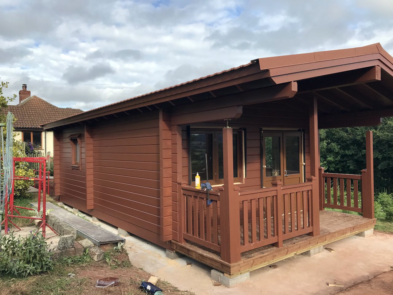 Contemporary log building in Exeter combining urban convenience with natural log construction beauty.